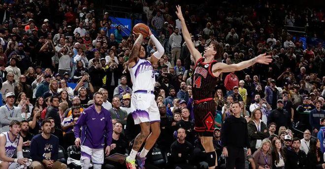 老鹰124-122大逆转战胜太阳,爵士双加时150-147击败公牛。